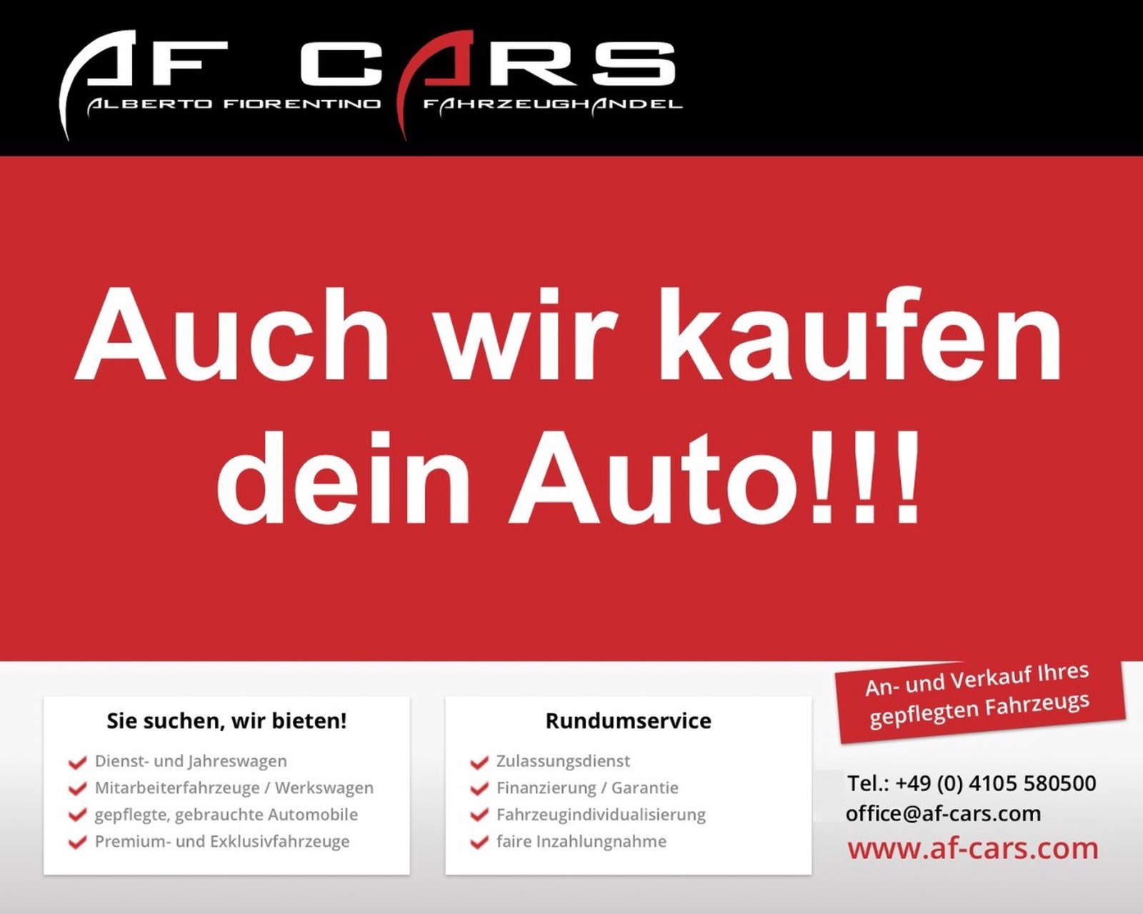 Ankauf sowie Inzahlungnahme Ihres gepflegten Gebrauchtwagens möglich. Fahrzeugbesichtigung jederzeit nach Terminvereinbarung möglich.